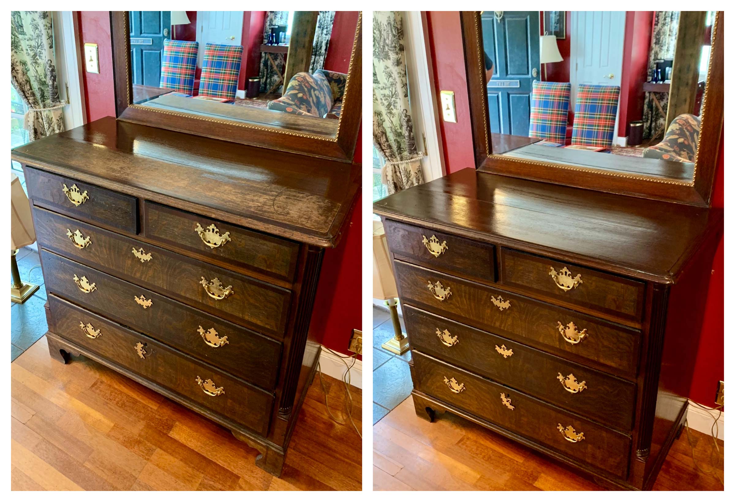 Northern Lights Restoration was hired by Antrim 1844, a historic boutique hotel on a 24-acre estate, to restore furniture in all 40 of its uniquely furnished guest suites and the mansion lobby. We also restored the historic tavern bar, sanding down its panels to give it a refreshed look.