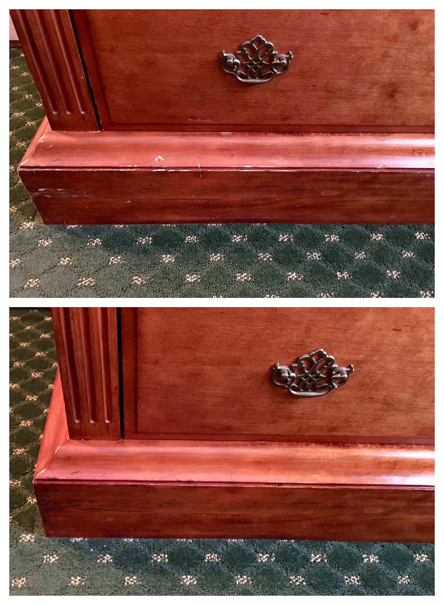 The furniture in our hotel is of high quality but light in color, making it hard to cover scratches and deep marks. I could not believe my eyes when I saw what Northern Lights did in a very short period of time. The scratches gone, marks gone, and no smell. I wanted my staff to take lessons as his staff opened doors for our guests and went out of their way to be professional in every respect.