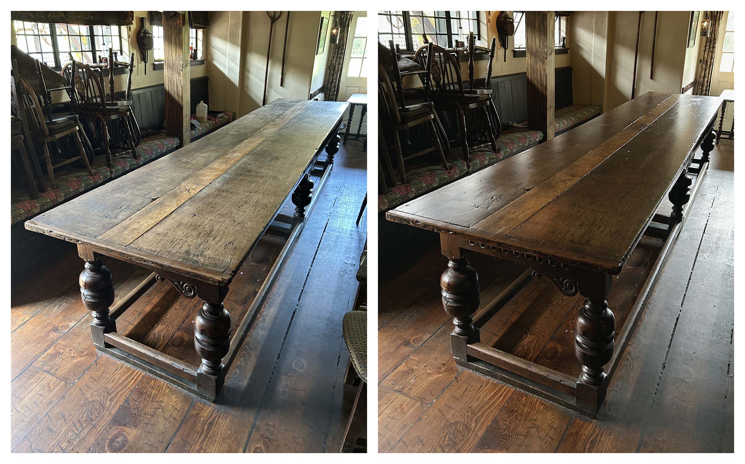 Restored all antique furnishings in each of the 7 guestrooms, the English Pub, living room, and restaurant tables and chairs.