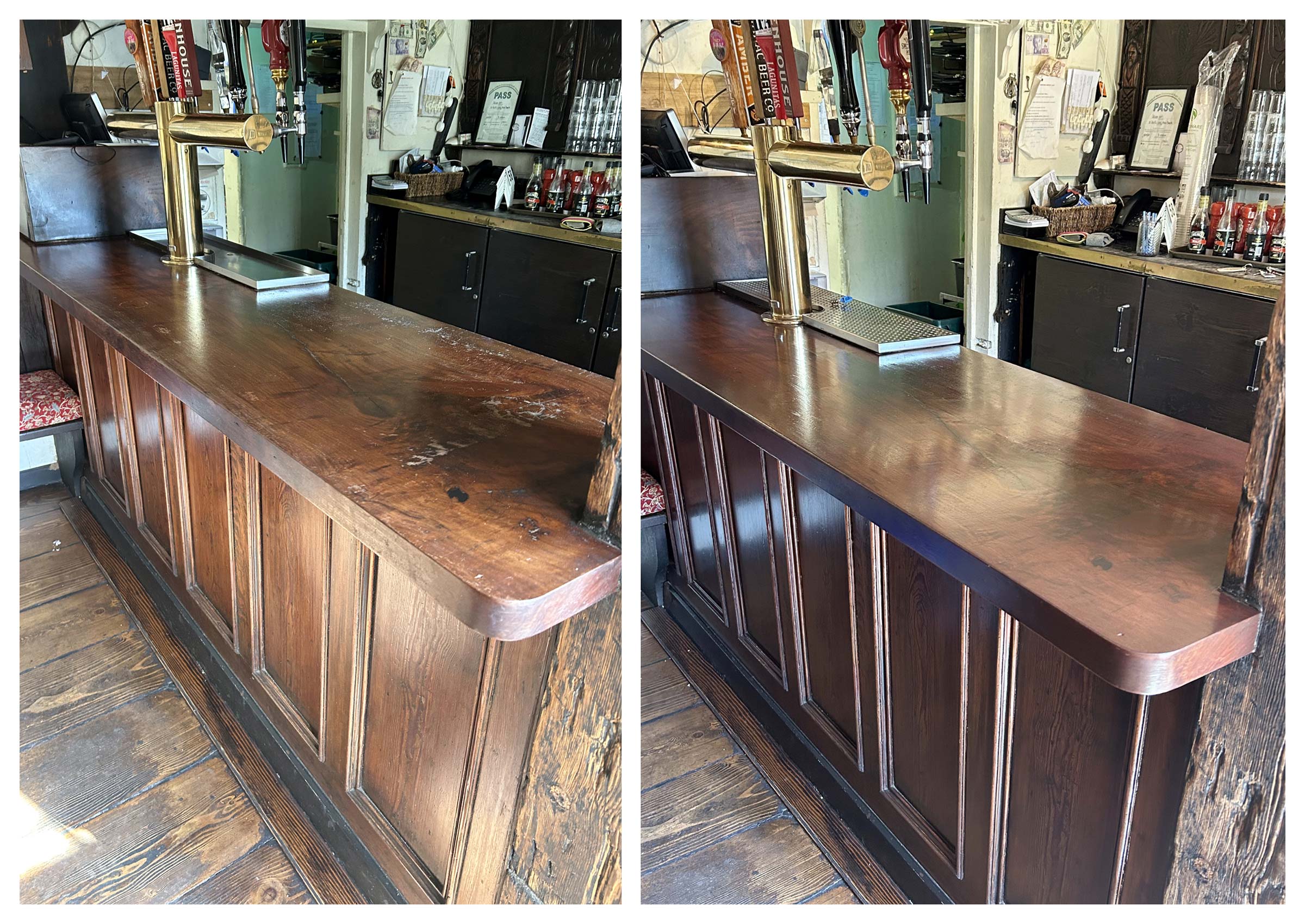 The Pelican Inn is one of 5 unique properties owned and operated by North American County Inns. On two occasions, Northern Lights Restoration provided our on site refinishing service for this unique boutique inn. We restored all the antique furnishings in each of the 7 guestrooms, their English Pub, living room and restaurant tables and chairs.